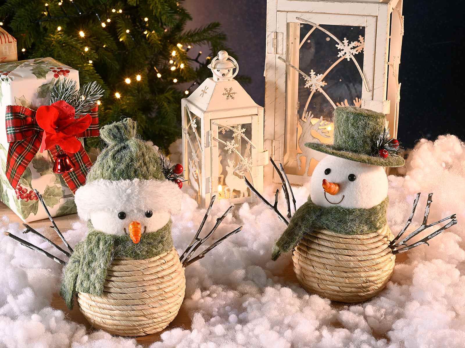 Pupazzo di neve in feltro e fibra naturale cm 21x10,5x18h Due soggetti assortiti
