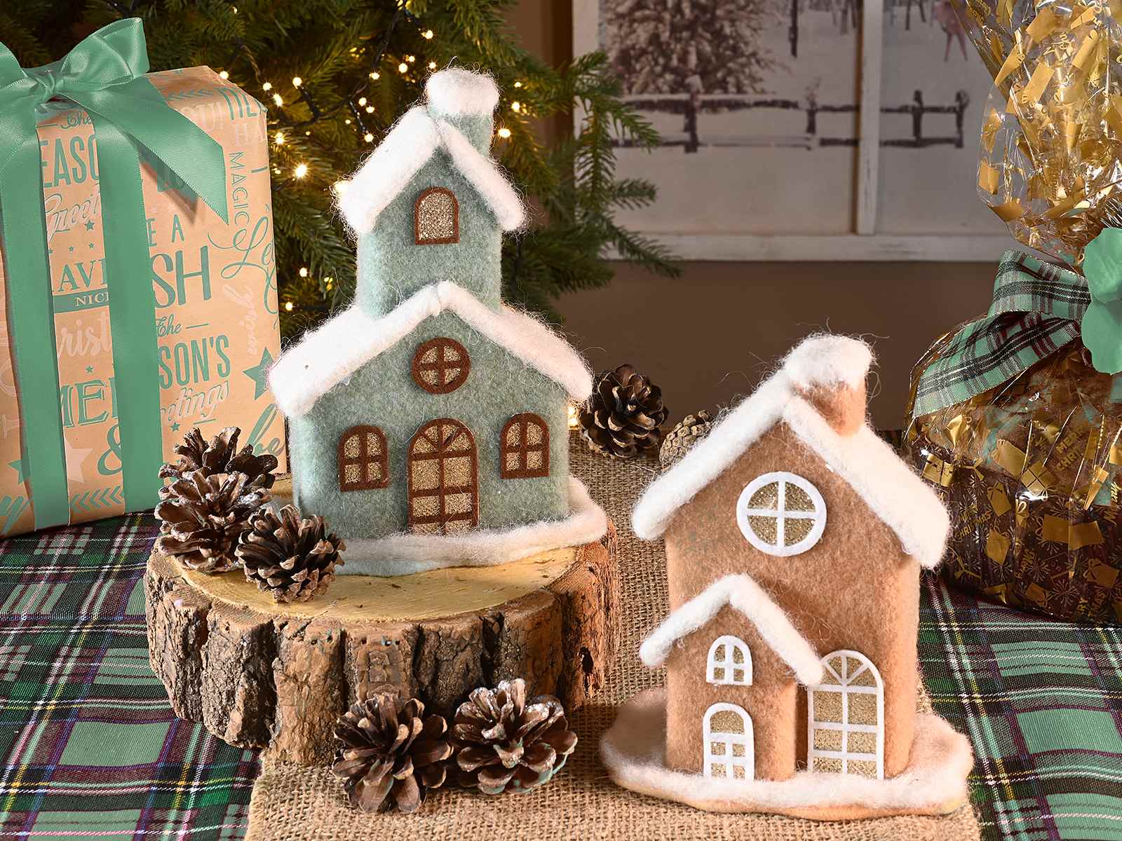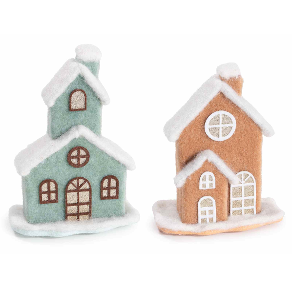 Casetta innevata in feltro cm 14 x 8 x 18,5 H Possibilità di scegliere la coloraziene nell'apposito pulsante