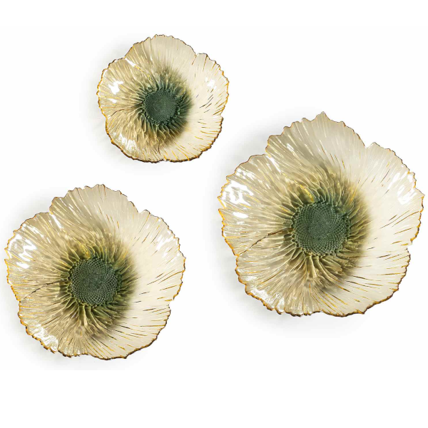 Piatto a forma di fiore adatto al contatto alimentare in vetro lavorato