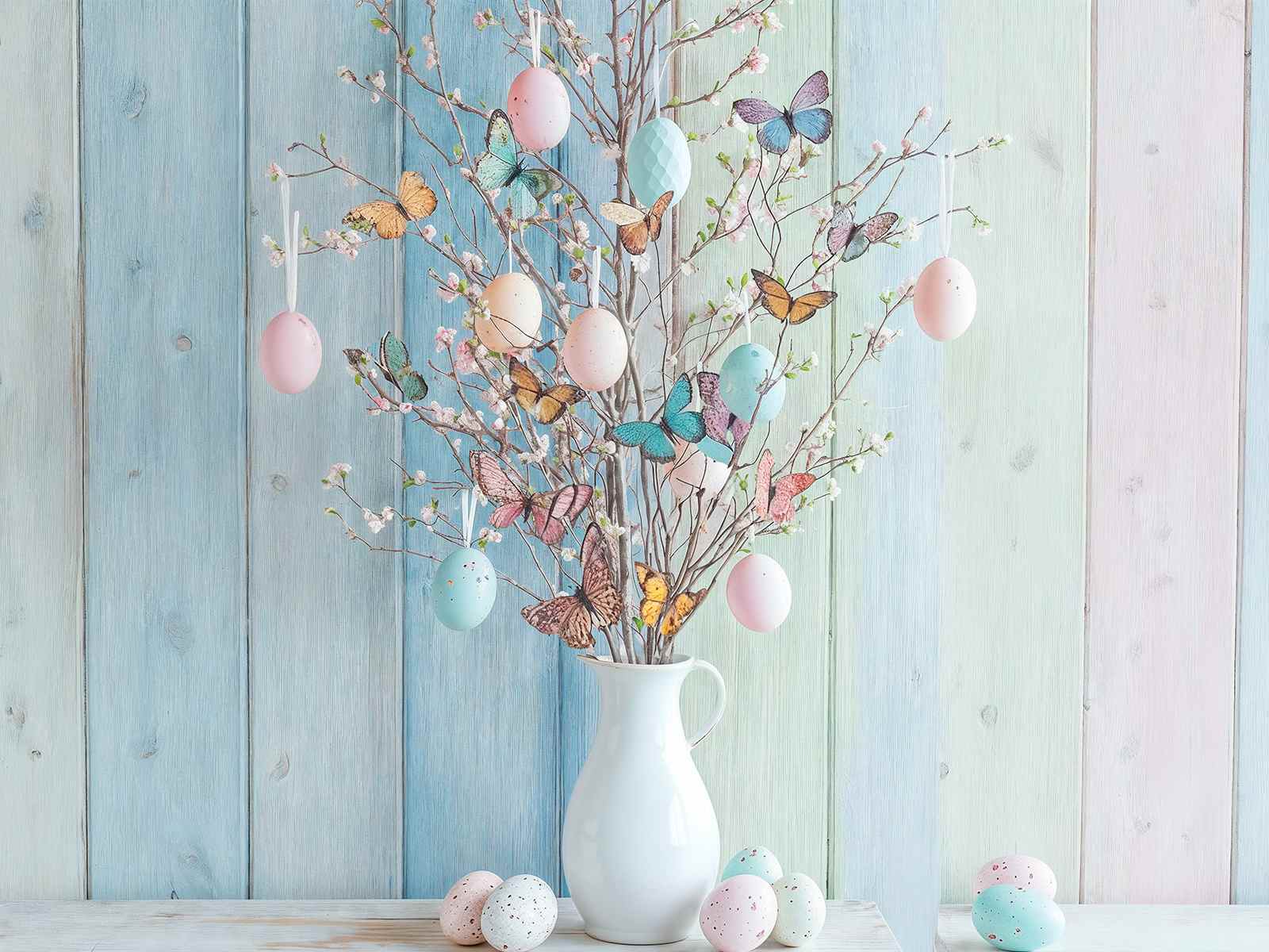 Rami primaverili artificiali modellabili con farfalle decorative applicate