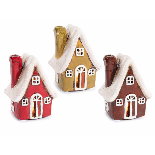 Casetta in terracotta con lucine a led cm 8x6x11h Disponibile in 3 colorazioni diverse da scegliere nell'apposito pulsante