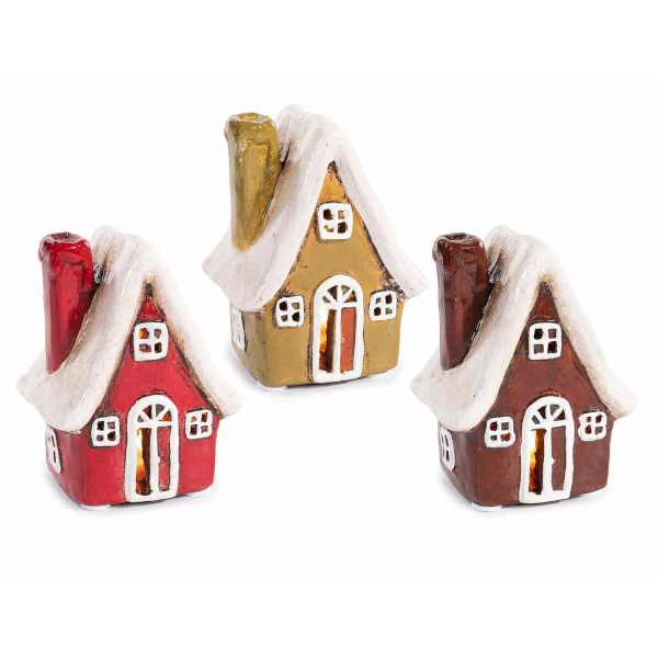 Casetta in terracotta con lucine a led Misure: cm 8 x 6 x 11 H Disponibile in tre colorazioni da selezionare nell'apposito pulsante