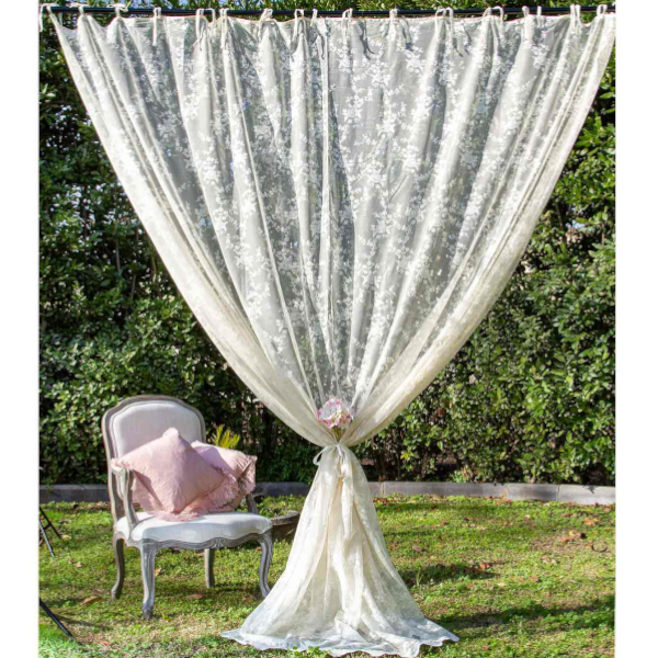 Bellissima coppia di tende effetto pizzo con lacci de L'Atelier 17 cm 140x290h Disponibile nel colori: Bianco, panna